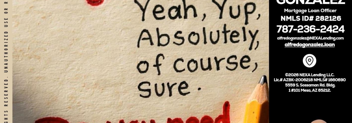 Hi, my name is Alfredo Gonzalez. I’m a Loan Officer with NEXA Lending LLC., offering personalized mortgage solutions, fast customized quotes, great rates and service with integrity.