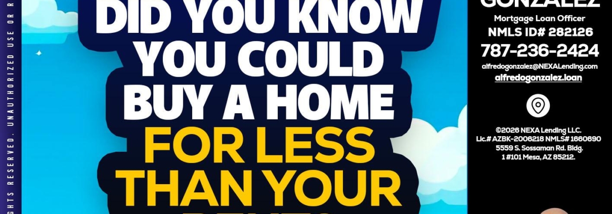 Hi, my name is Alfredo Gonzalez. I’m a Loan Officer with NEXA Lending LLC., offering personalized mortgage solutions, fast customized quotes, great rates and service with integrity.