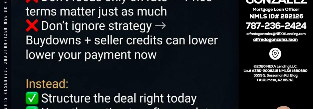 Hi, my name is Alfredo Gonzalez. I’m a Loan Officer with NEXA Lending LLC., offering personalized mortgage solutions, fast customized quotes, great rates and service with integrity.