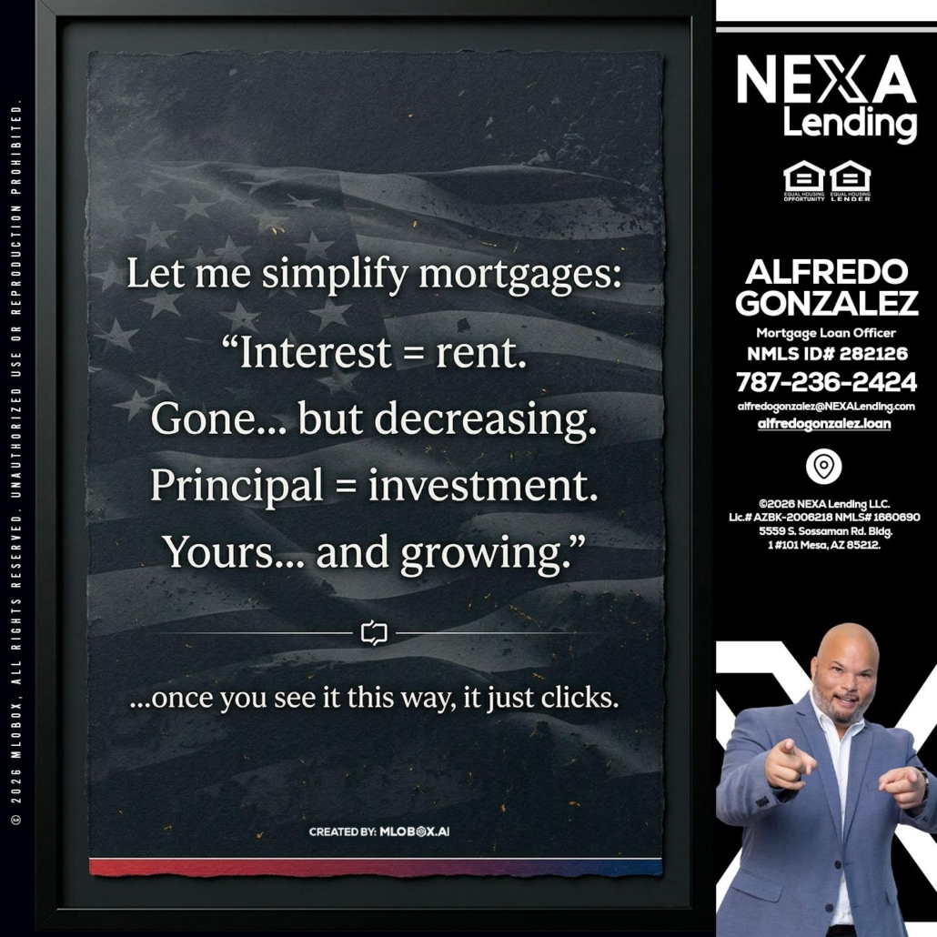 Hi, my name is Alfredo Gonzalez. I’m a Loan Officer with NEXA Lending LLC., offering personalized mortgage solutions, fast customized quotes, great rates and service with integrity.