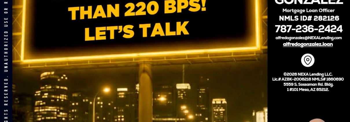 Hi, my name is Alfredo Gonzalez. I’m a Loan Officer with NEXA Lending LLC., offering personalized mortgage solutions, fast customized quotes, great rates and service with integrity.
