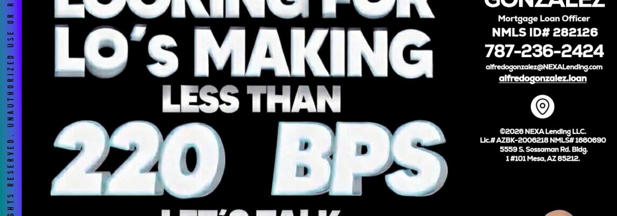 Hi, my name is Alfredo Gonzalez. I’m a Loan Officer with NEXA Lending LLC., offering personalized mortgage solutions, fast customized quotes, great rates and service with integrity.