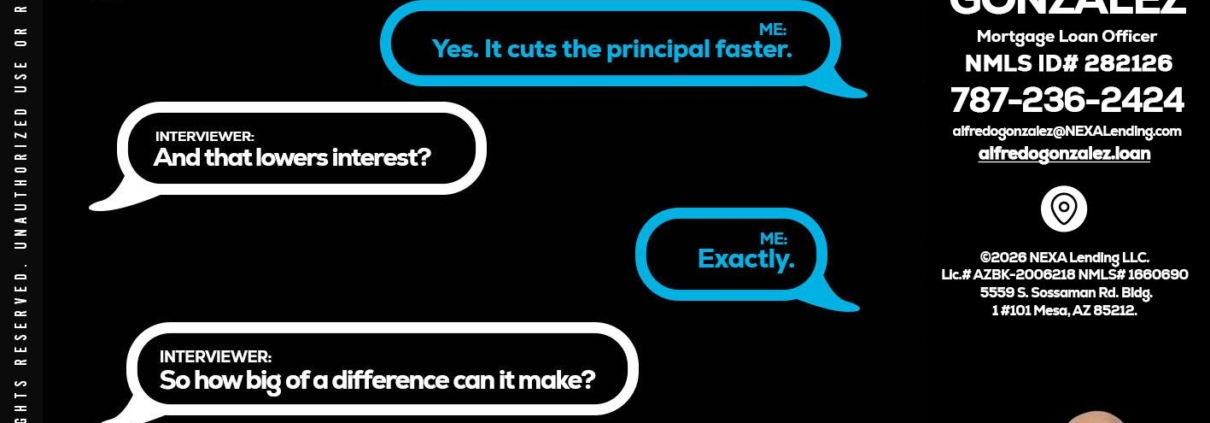 Hi, my name is Alfredo Gonzalez. I’m a Loan Officer with NEXA Lending LLC., offering personalized mortgage solutions, fast customized quotes, great rates and service with integrity.