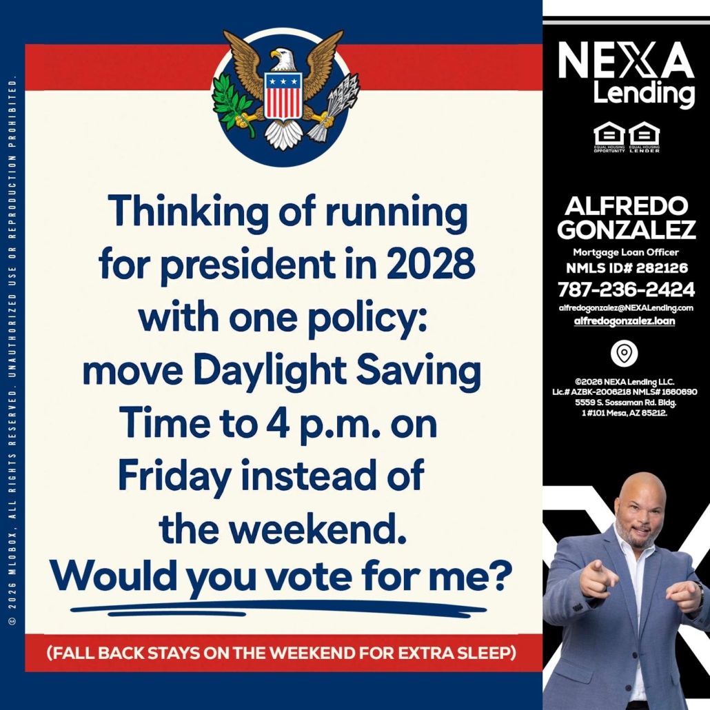 Hi, my name is Alfredo Gonzalez. I’m a Loan Officer with NEXA Lending LLC., offering personalized mortgage solutions, fast customized quotes, great rates and service with integrity.